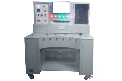 The test system is designed and customized to carry out 2.55*Intest as per Table 7 (test c) of IEC 60898 (also mentioned for routine testing of MCBs. The test is done at dc current to exactly analyze and correct the bimetallic properties of the MCB as far as thermal tripping is concerned. The unit comes with a pneumatically operated test fixture with in-built dc stepper motor that is controlled by a micro controller / PC to calibrate the breaker into a narrow tripping band programmed by the user.